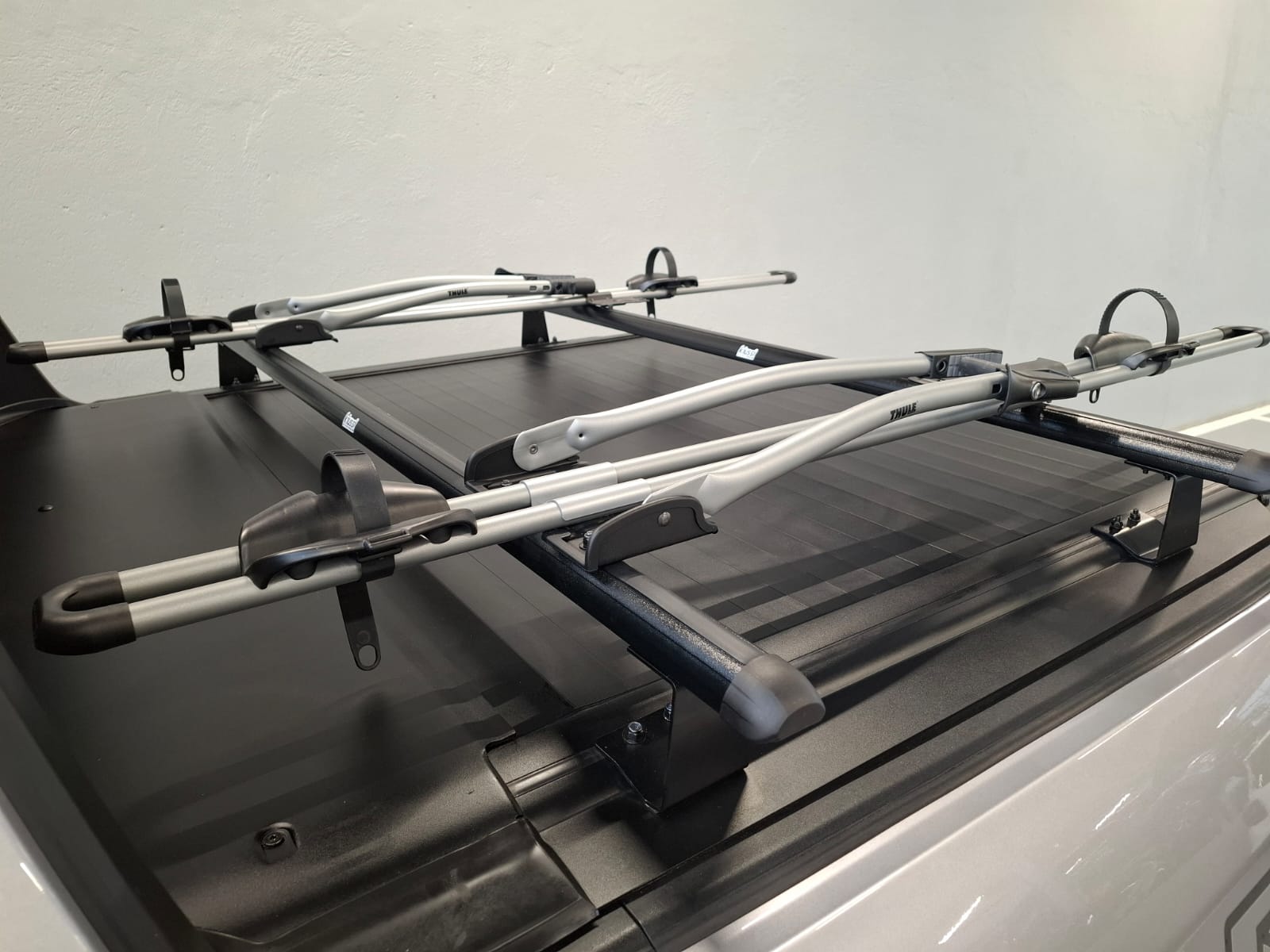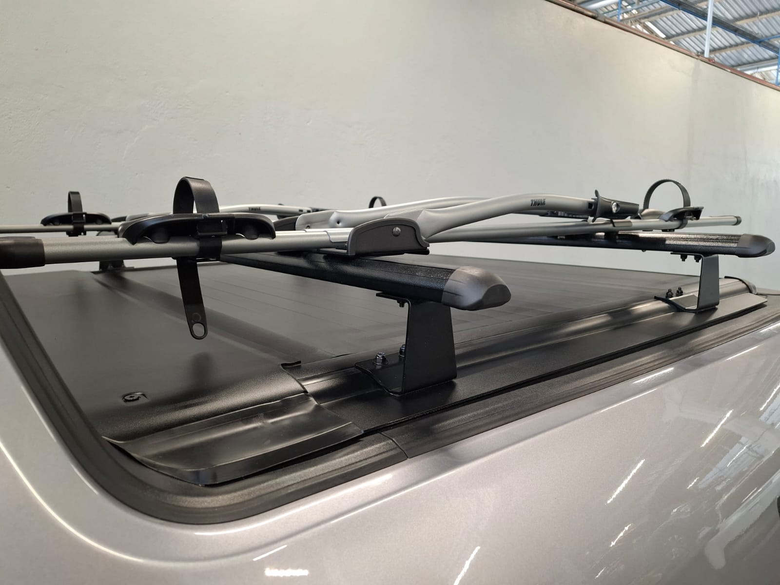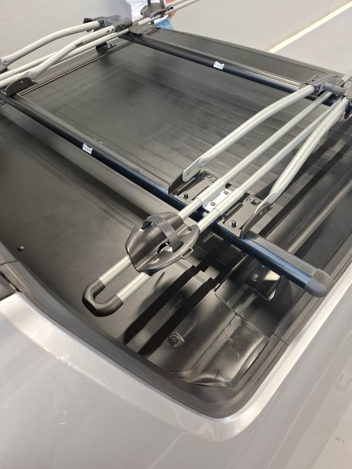 Lembrando que quando furado a borracha para colocação do suporte tanto no carro com a capota eletrica , quanto no carro sem capota eletrica que é furado na borda interna da caçamba para fixação das barras transversais , os furos ficam visíveis, caso haja necessidade de remover as barras transversais da caçamba.