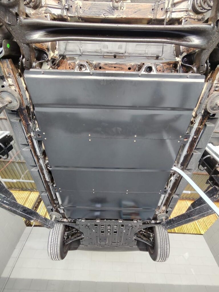 Protege a bateria de alta tensão, localizada abaixo do assoalho, contra impactos físicos, detritos da estrada, pedras, areia e lama.