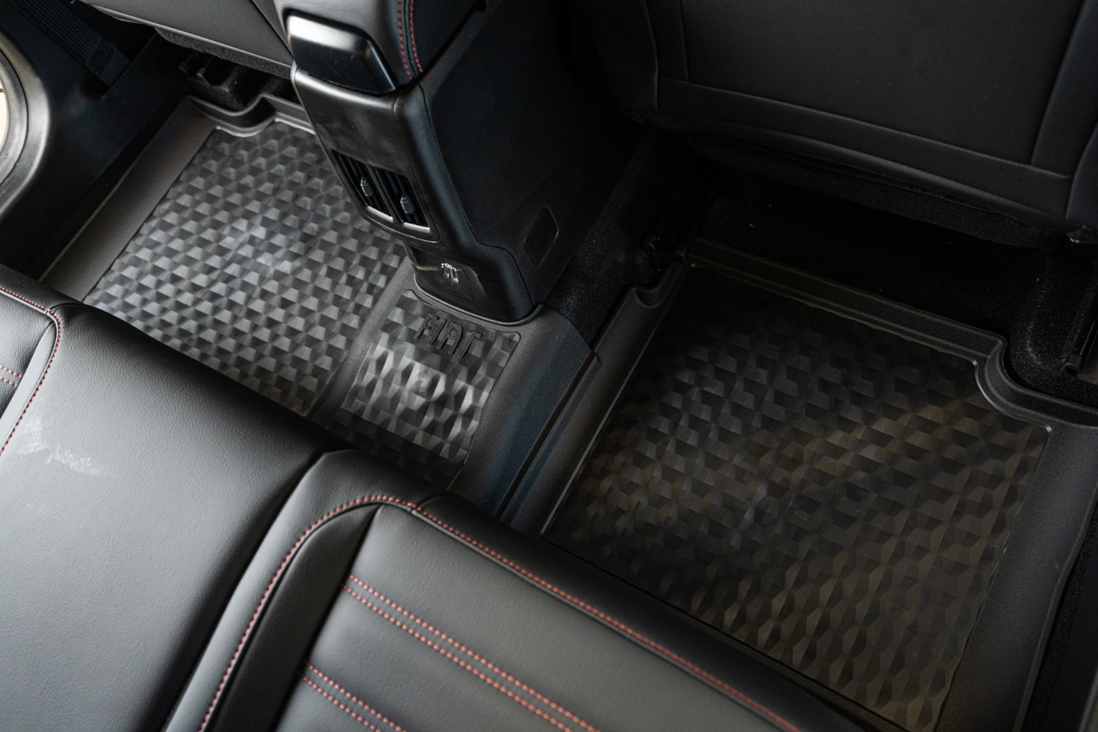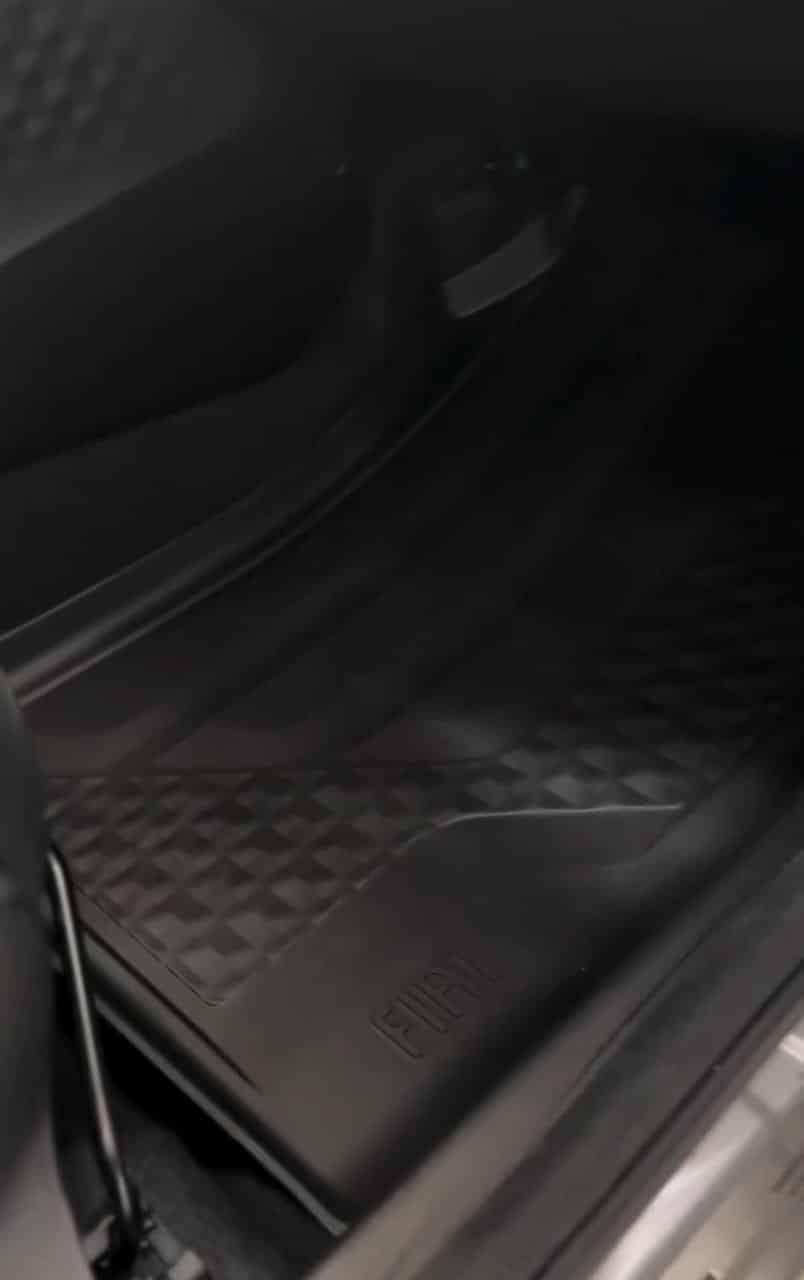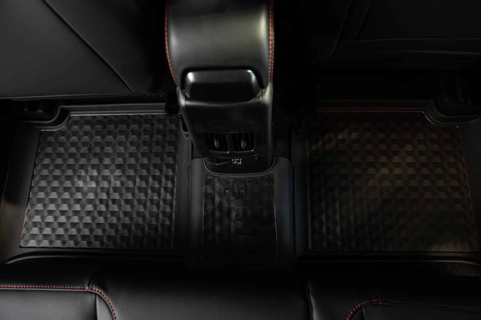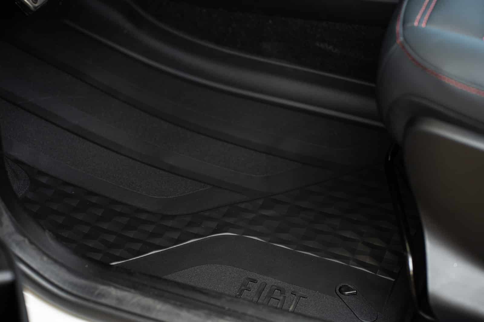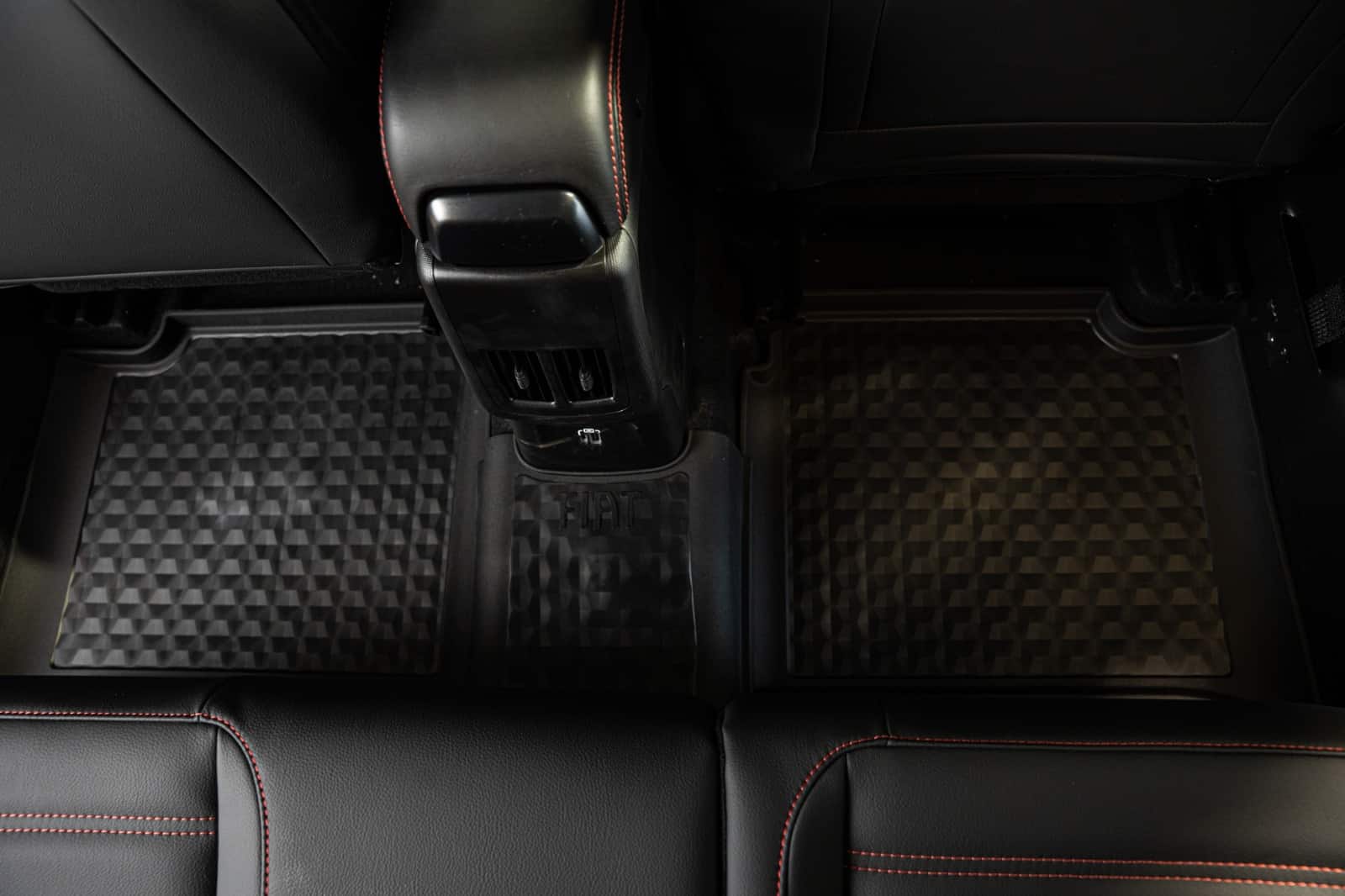 ▪️O Tapete de borracha de bordas elevadas Fiat cobre toda a área e possui ranhuras para retenção de líquidos.