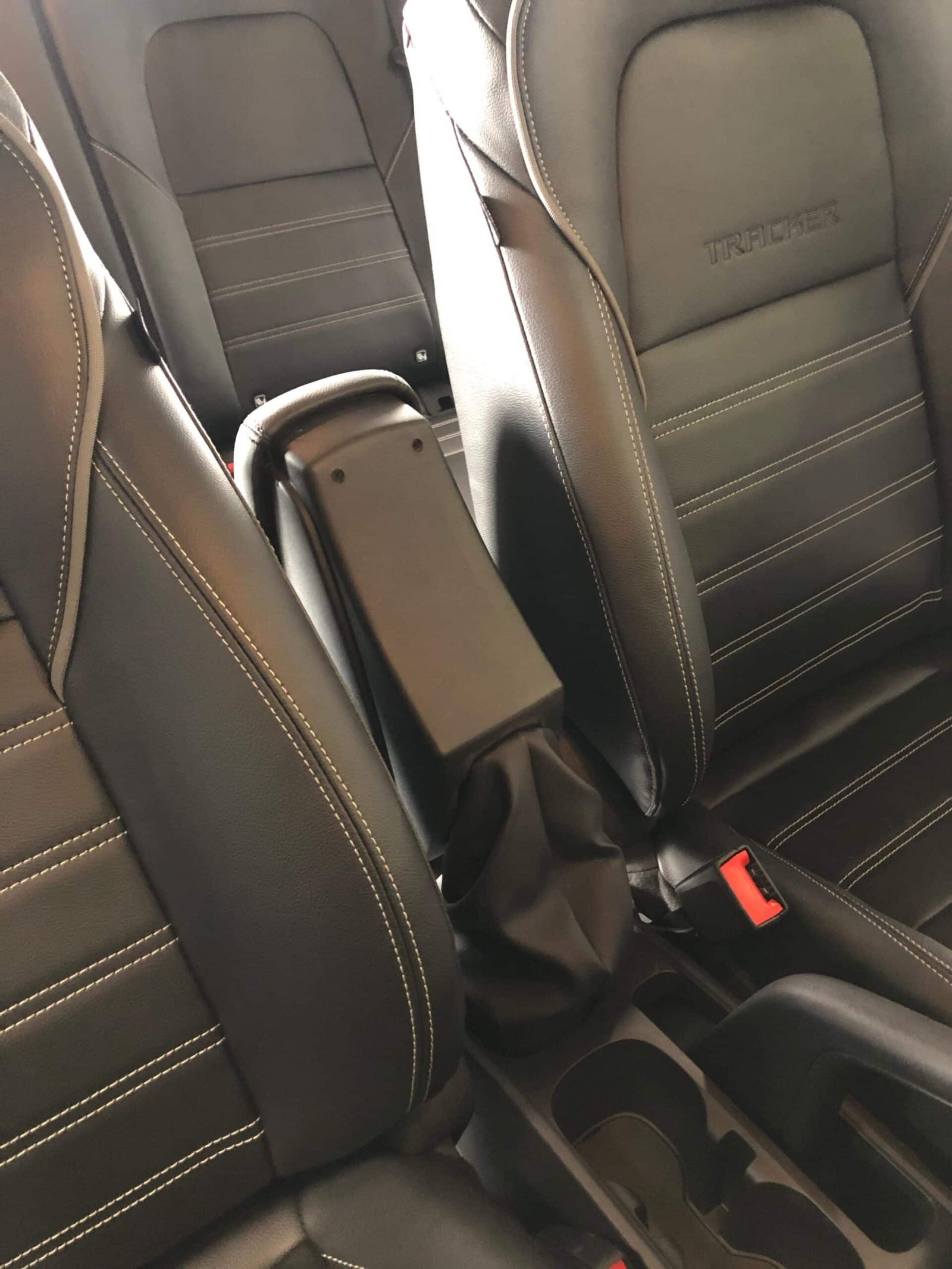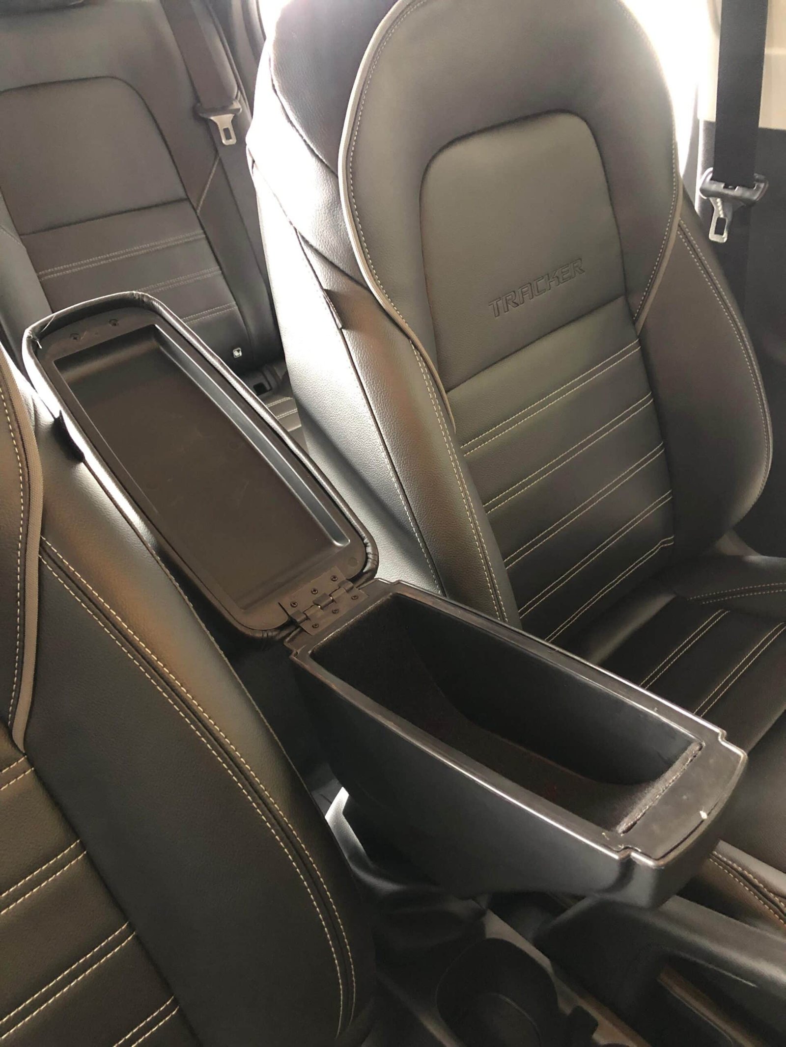 -Na Tracker PCD A chave reserva fica na extensão do console on de é encaixado o apoio de braço