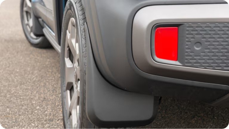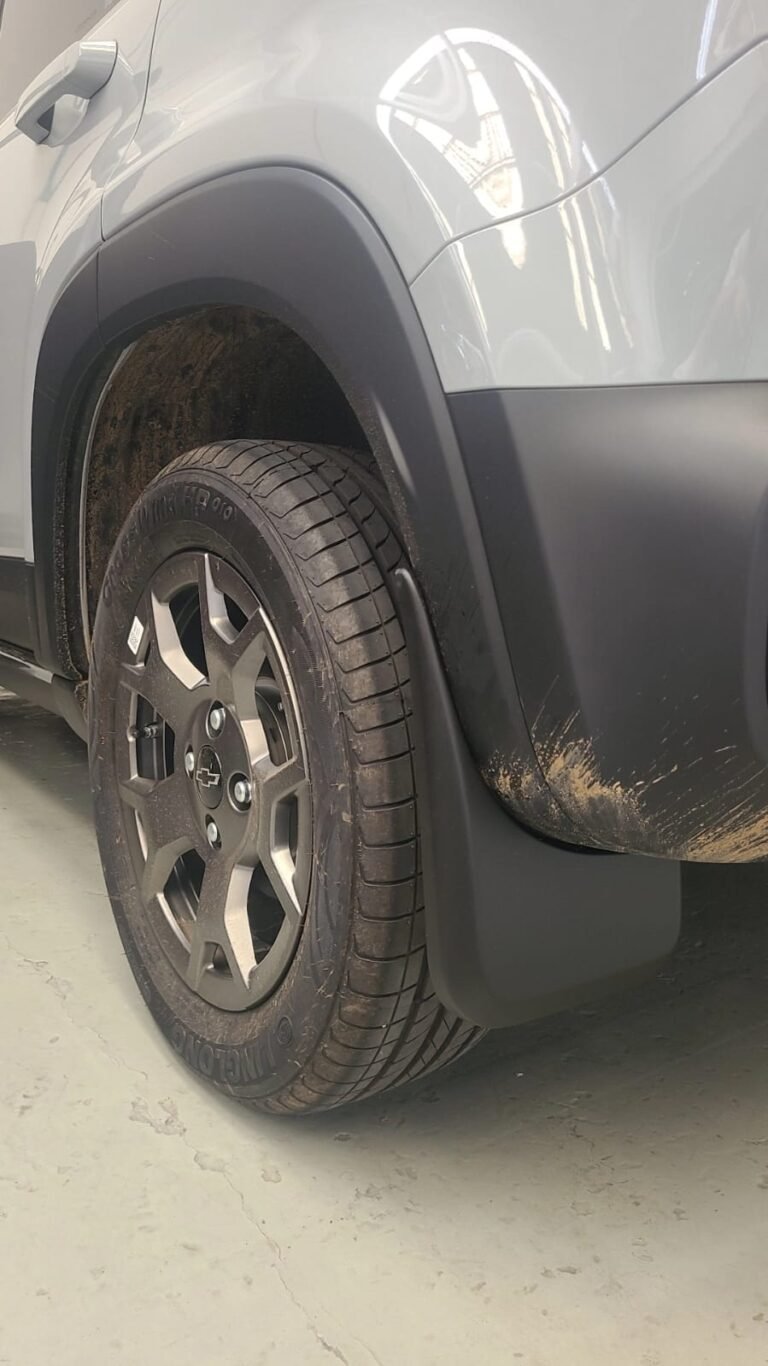 Proteção contra detritos: Impede que barro, pedras e outros resíduos sejam lançados para a parte externa e para os componentes inferiores do carro, prevenindo arranhões e sujeira excessiva.