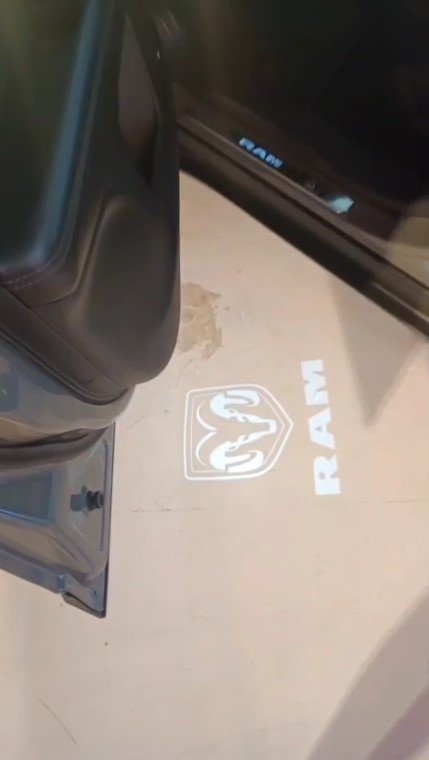 -Ao abrir as portas dianteiras do seu veiculo , a luz de cortesia irá projetar o logo Ram no chão
